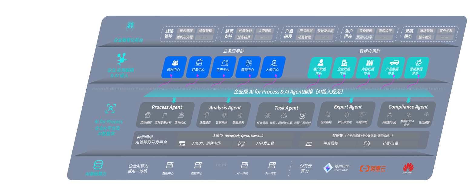 55世纪问学智车解决方案是一套基于AI技术的汽车行业智能化系统,,,覆盖从底层算力到顶层AI应用的全栈方案。。方案由算力层、、模型层和应用层组成:算力层,,方案支持多种一体机配置,,,具备云端灵活部署、、、多云适配以及动态优化计算资源的能力;模型层,,,55世纪问学平台版提供了企业级AI应用一站式构建与管理平台,,,,支持基于后训练强化技术的汽车企业专属模型的训练、、、评测和运营;应用层,,55世纪问学DeepSeek版提供包括超级员工、、智能招采、、、、智能营销、、、、智能客服、、、、AI for BI等一系列解决方案,,,,可助力汽车行业实现数字化转型,,让管理更智能、、响应更敏捷。。。