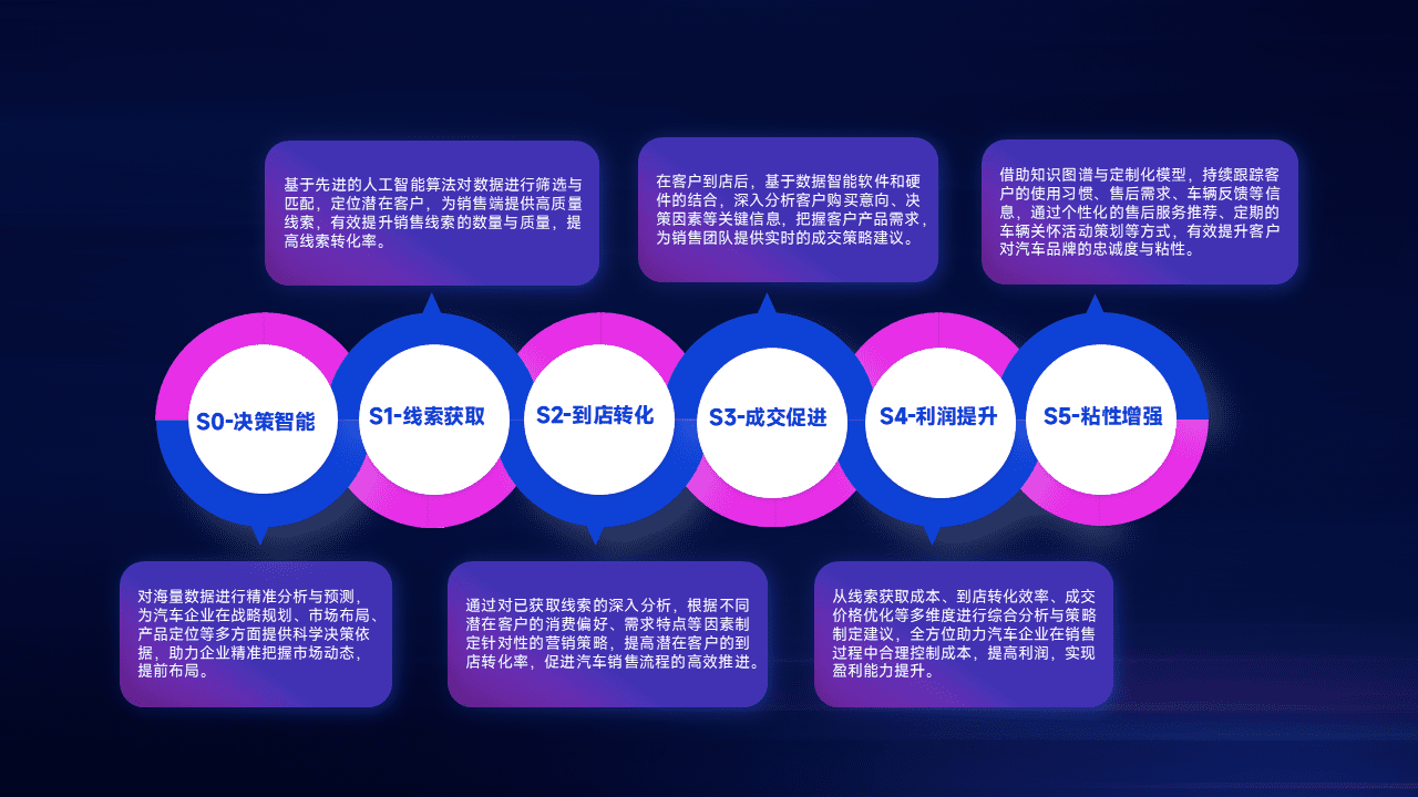 通过拓宽潜在客户来源、、、优化线索分配并提高到店转化率,,以增强销售效率。。。。同时,,利用线索数据不断优化分析模型,,,,有效提升转化率,,,,扩大营销影响力。。。。